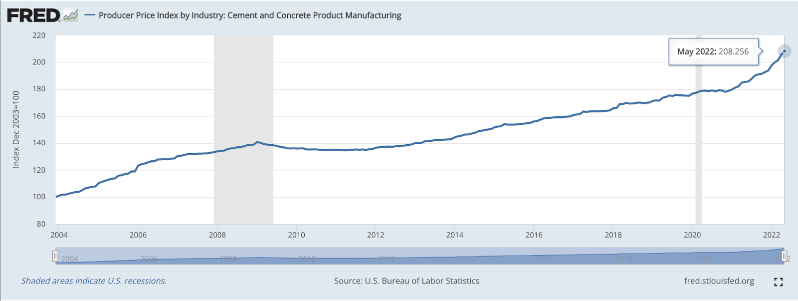 Welcome to 2022 where the price of everything is… a lot! Producer price index shows us that the cost of concrete on a production side alone has risen astronomically in the last 2 years.